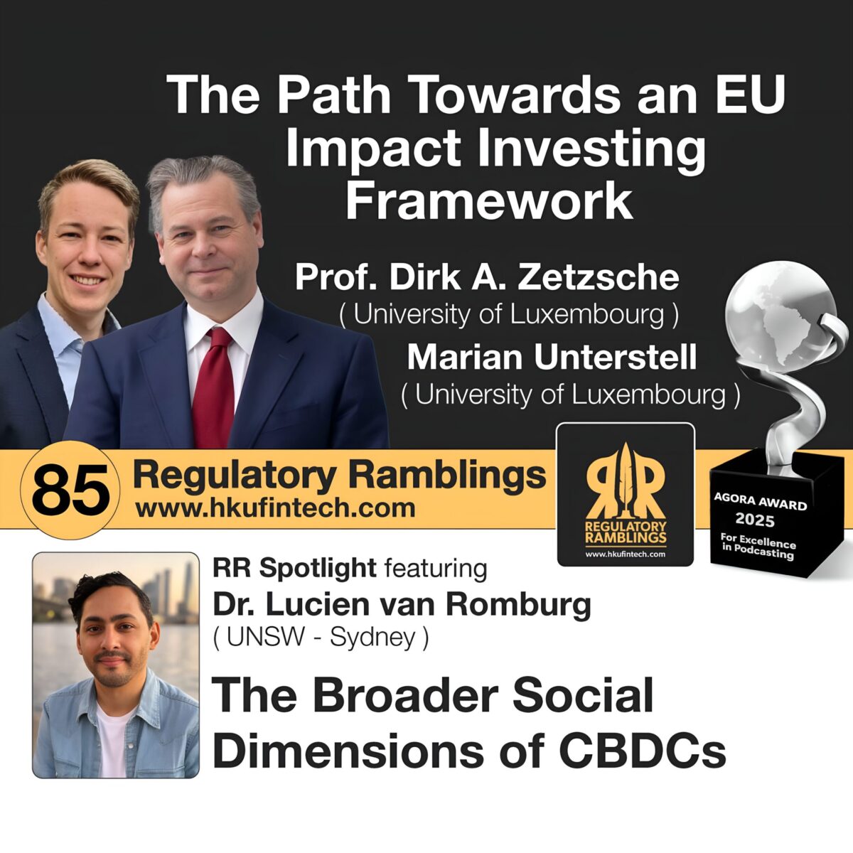 Today’s episode starts with a spotlight discussion with Dr. Lucien van Romburg of UNSW on an article he recently co-authored with Scientia Professor Ross Buckley that examines the broader social dimensions of the decision to issue central bank digital currencies (CBDC). After that, we chat with Professor Dirk Zetzsche and Marian Unterstell, both from the University of Luxembourg, about their article on the road to a European Union impact-investing framework.