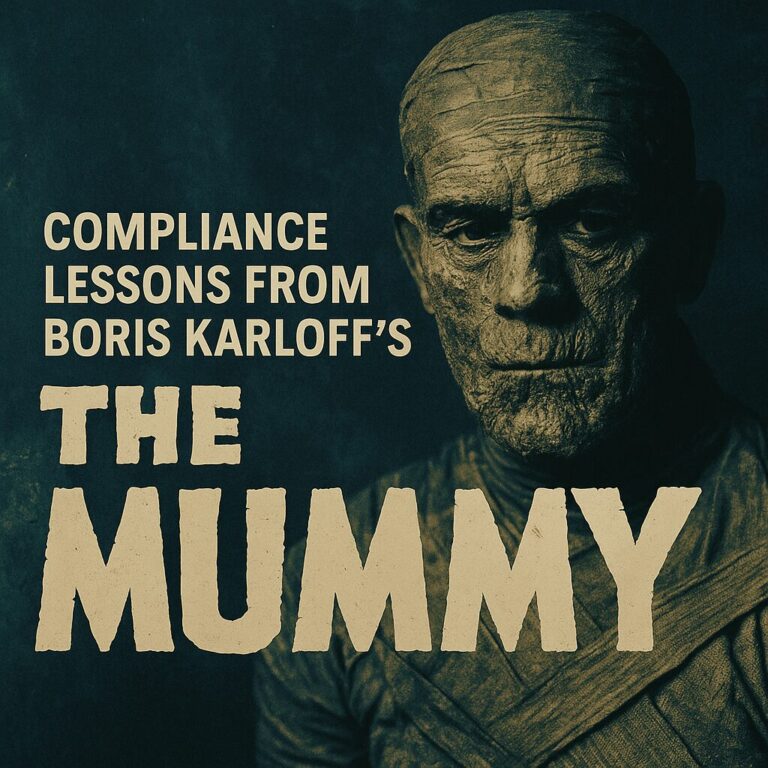 Like Imhotep, compliance failures rarely emerge overnight. They are buried, hidden, and ignored until they rise again with destructive force. The Karloff Mummy teaches us that vigilance, transparency, and cultural strength are the only safeguards against being haunted by the past.