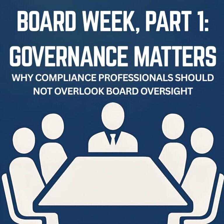 In today’s environment of heightened scrutiny, where investors demand stewardship and regulators demand accountability, compliance professionals have a unique opportunity. By stepping into the governance conversation and making board oversight part of the compliance agenda, we can help build organizations that are not only compliant but resilient, trusted, and positioned for long-term success.