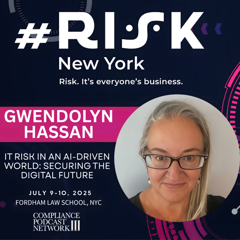 In this episode, Tom Fox talks with Gwen Hassan, the Chief Compliance Officer for Unisys Corporation, about her role and the upcoming #RiskNYC conference. Gwen shares insights into Unisys’ operations, including the various technologies and services they provide, and highlights her responsibilities in managing global ethics, compliance, and trade compliance risks. She also gives a teaser about her panel presentation on the compliance and ethics risks associated with artificial intelligence, stressing the importance of understanding AI’s impact on company culture and regulatory compliance. Gwen expresses her excitement about the conference, emphasizing the value of engaging with fellow risk management experts.